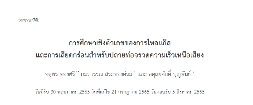 | Title: | การศึกษาเชิงตัวเลขของการไหลแก๊สและการเสียดกร่อนสำหรับปลายท่อจรวดความเร็วเหนือเสียง |