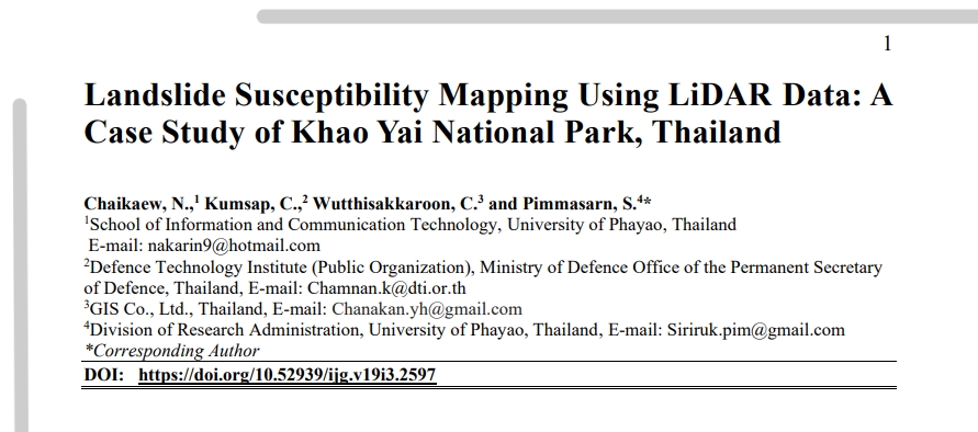 | Title: | Landslide Susceptibility Mapping Using LiDAR Data: A Case Study of Khao Yai National Park, Thailand |