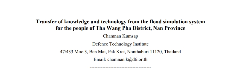 | Title: | Transfer of knowledge and technology from the flood simulation system for the people of Tha Wang Pha District, Nan Province |
